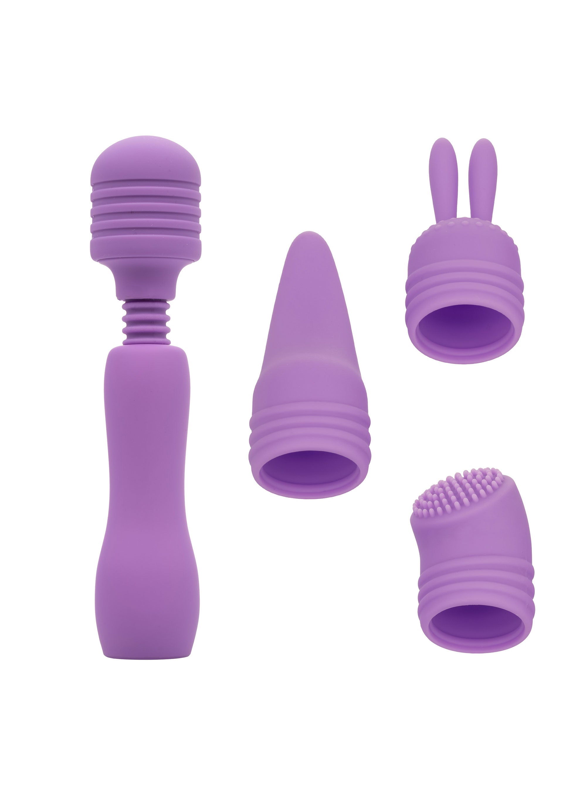 The Travel Teaser Kit is a rechargeable massager with a flexible head and 4 interchangeable silicone attachments. Choose your favorite sensation with 10 vibration modes. Made from body-safe silicone and waterproof (IPX7), it is safe for shower or bath play. The memory function returns to your last setting, and the travel lock keeps it discreet in your bag. USB rechargeable with a full charge in 1 hour. Provides up to 60 minutes on low speed or 45 minutes on high. Perfect for travel and everyday pleasure.